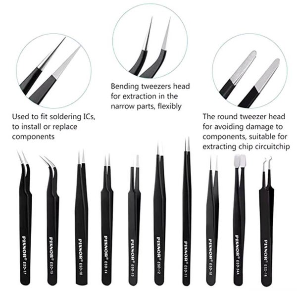 Juego de herramientas de reparación de pinzas de precisión antiestáticas de acero inoxidable, 9/10 ESD juego de pinzas, para reloj electrónico, teléfono móvil