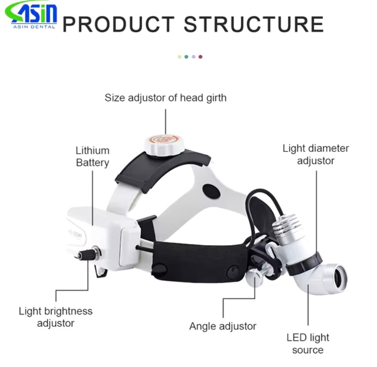 Lámpara de cabeza Dental, 3W, brillo de punto ajustable con dos baterías de piezas, herramientas de odontología
