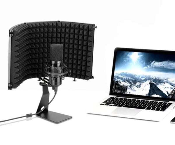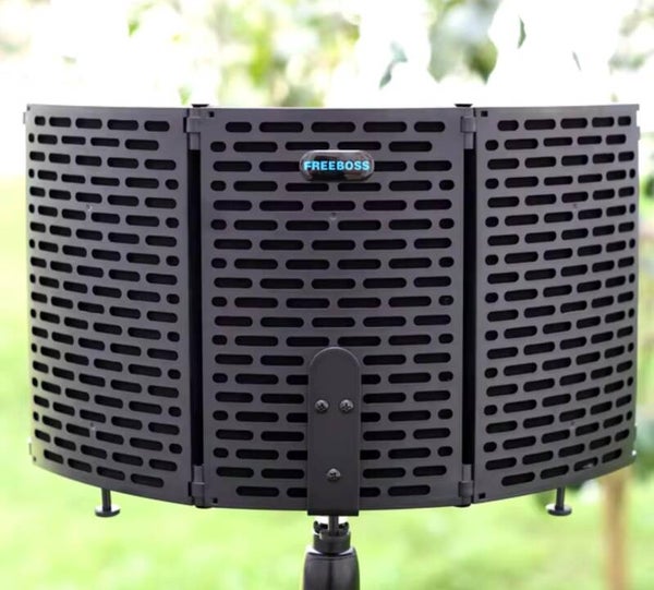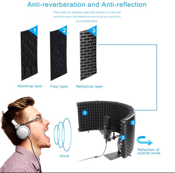 Protector de parabrisas para micrófono de 3 y 5 paneles, espuma de pantalla acústica plegable con soporte para grabación, transmisión en vivo,