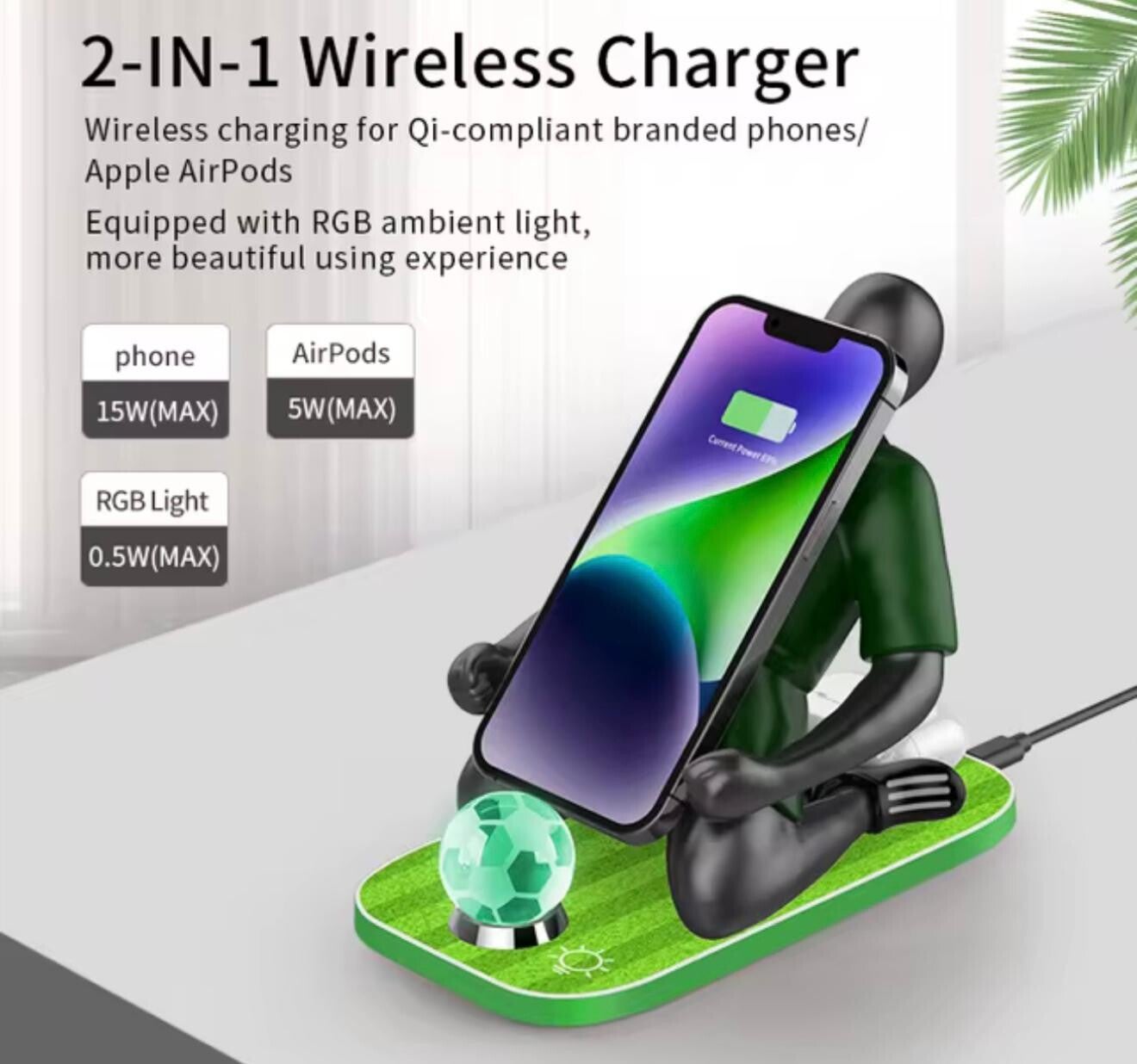 Cargador inalámbrico 2 en 1 para accesorios de fútbol, soporte para iPhone 13, 12, 11 Max, estación de carga plegable rápida, base para AirPods charging station wireless charging station cargador de fútbol