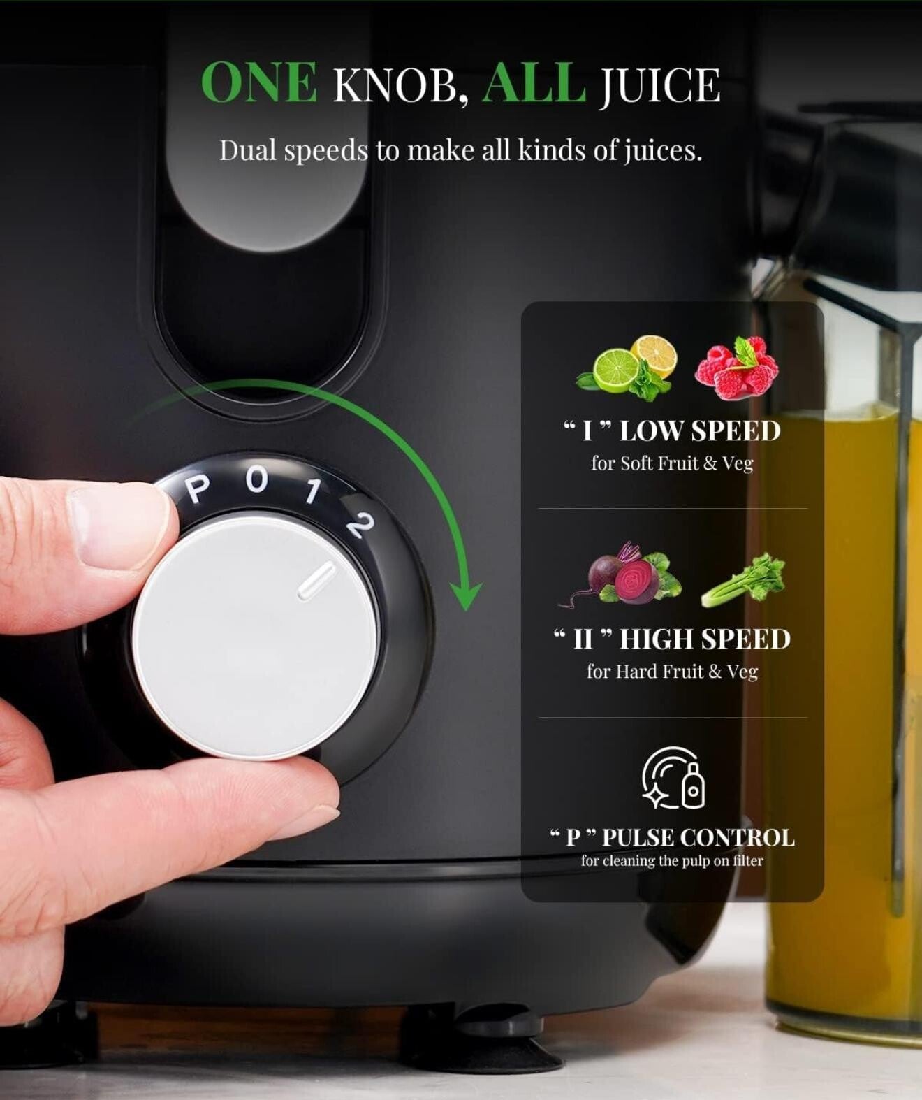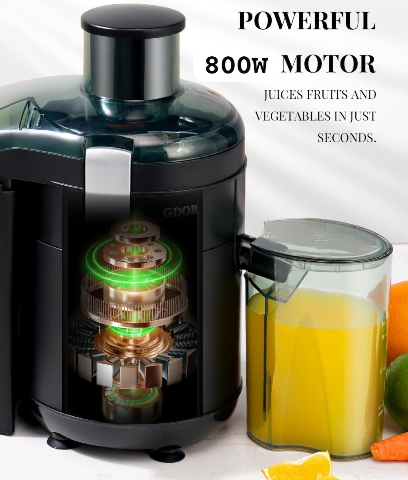Exprimidor de alta velocidad con motor fuerte de 800 W, lo que permite al exprimidor extraer rápida y eficientemente jugo fresco y lleno de nutrientes de frutas y verduras en cuestión de segundos. Haz que cada sesión de jugo sea muy fácil y te proporciona una experiencia de jugo agradable