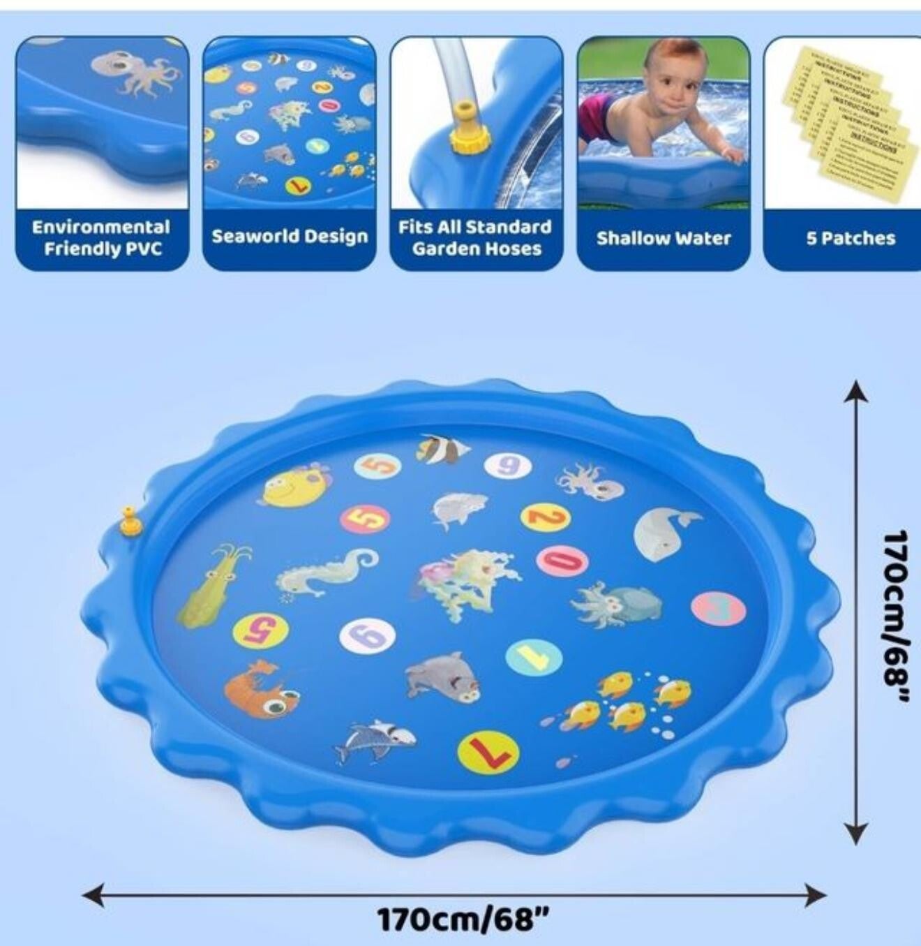 Almohadilla redonda, alfombra de juego de agua 170 cm almohadilla de rociadores de juguete, juguete de agua de jardín de verano para niños, almohadilla de rociadores, alfombra acuática de piscina (azul) SE ENTREA EN AV. PEÑA PRITA 21 PUENTE DE VALLECAS ESCRIBIR PARA CONCRETAR HORA Y FECHA DE ENTREGA GRACIAS.